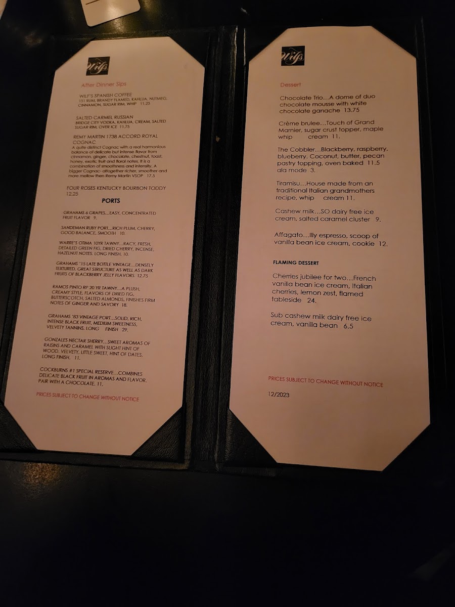 Sauteed in butter, demi-glace, wine, topped with crispy leeks, crumbled bleu, garlic bread